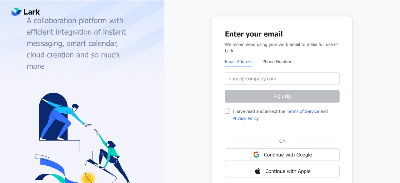 Bây giờ tài khoản người sáng lập và tổ chức của bạn đã được tạo, hãy tải xuống Lark nếu bạn chưa có. Bạn có thể đăng nhập bằng địa chỉ email bạn đã sử dụng cho quá trình tạo tài khoản.